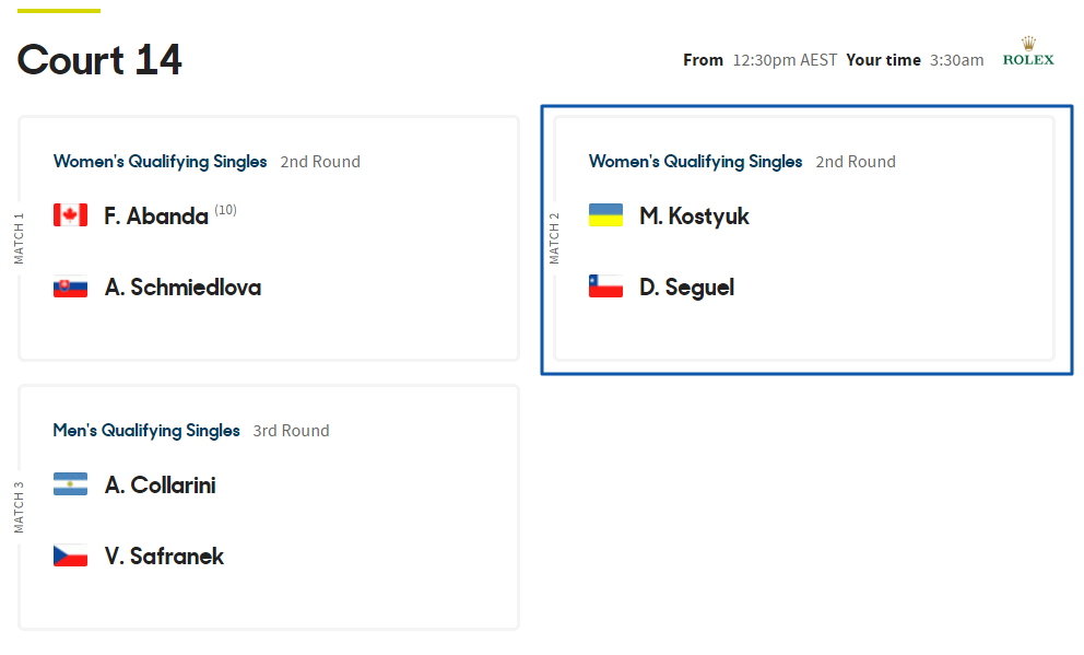 Розклад змагань на Відкритому чемпіонаті Австралії.
