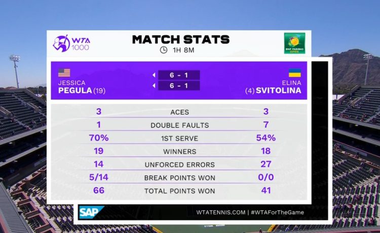 24-та ракетка світу Джессіка Пегула здобула свою другу перемогу над Еліною Світоліною цього року (2-1 на користь американки за особистими зустрічами) і сьому – над суперницею з топ-10 цього сезону.
