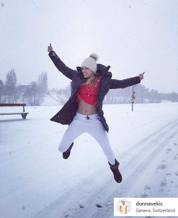 … поки Донна Векич радіє сніжній зимі у Швейцарії.