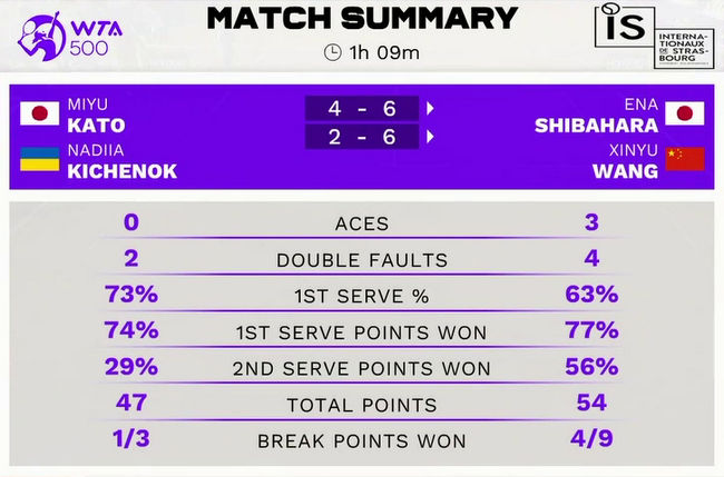 Надія Кіченок/Мію Като (Україна/Японія) – Ена Шібахара/Ван Сіньюй (Японія/Китай) 4:6, 2:6