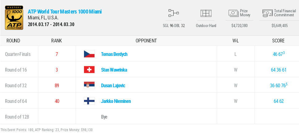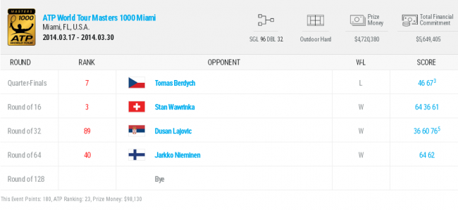 Первая ракетка Украины пропускает стартовый круг «Sony Open Tennis», как 23-й сеяный, а во втором раунде обыгрывает Ярко Ниеминена (Финляндия).