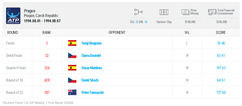 Несмотря на то, что украинец начал сезон только в марте, Медведев уже успел сыграть в трех финалах и дошел до 1/4 на Ролан Гаррос, где его обыграл Серхи Бругера. Испанец был сильнее и в борьбе за титул на соревнованиях в Чехии (3-6 4-6).