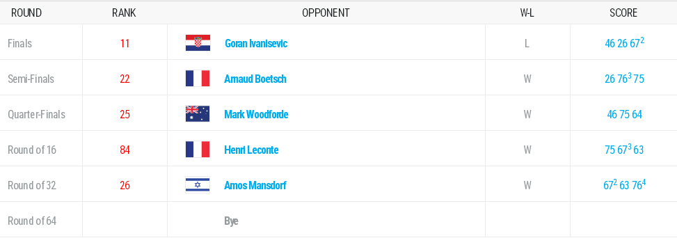 На турнире украинец (№8 в рейтинге АТР) все матчи провел в трех сетах, а в финале потерпел поражение от 11-й ракетки мира Горана Иванишевича. Выступление на заключительном Мастерсе сезона помогло Андрею Медведеву улучшить положение в мировой классификации и подняться на еще на две строчке (6-е место).