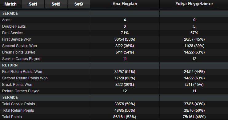 Юлия Бейгельзимер (Украина) — Ана Богдан (Румыния, 3) 1-6 6-2 2-6
